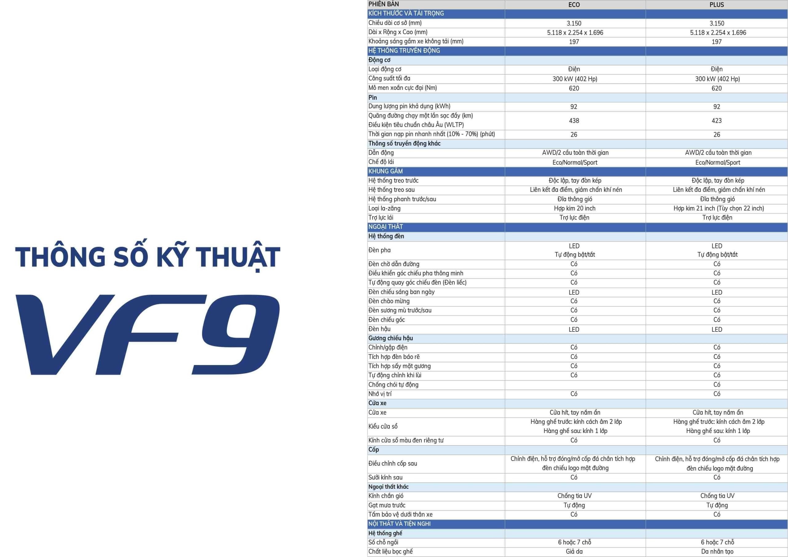 Thông số kỹ thuật VinFast VF9