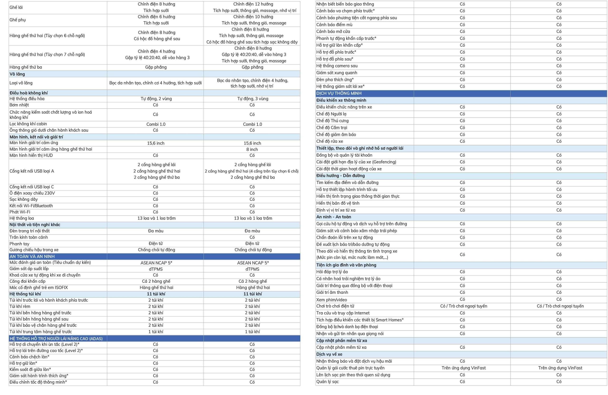 Tương tự VF8, VF9 2022 cũng sở hữu tới 11 túi khí và hướng tới mục tiêu đạt tiêu chuẩn 5 sao ASEAN NCAP, 5 sao EURO NCAP và 5 sao NHTSA. Danh sách an toàn cụ thể của VF9 sẽ được công bố trong thời gian tới, trước mắt mẫu SUV này gây ấn tượng với nhiều công nghệ hỗ trợ lái nổi bật như: